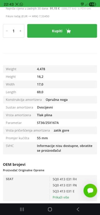 Prodajem NOVE amortizere SACHS 317 330. Odgovara na vw, audi, seat, skodu. Vidi se na slikama na koji tocno model ide. Naruceni zabunom, a nisam ih mogao vratiti jer je proslo 2 tjedna. Cijena 90e za oba dva prednja sachs amortizera. Ne šaljem poštom. Preuzimanje po dogovoru: Grad Zagreb i Zagrebacka zupanija. Moguca i dostava.