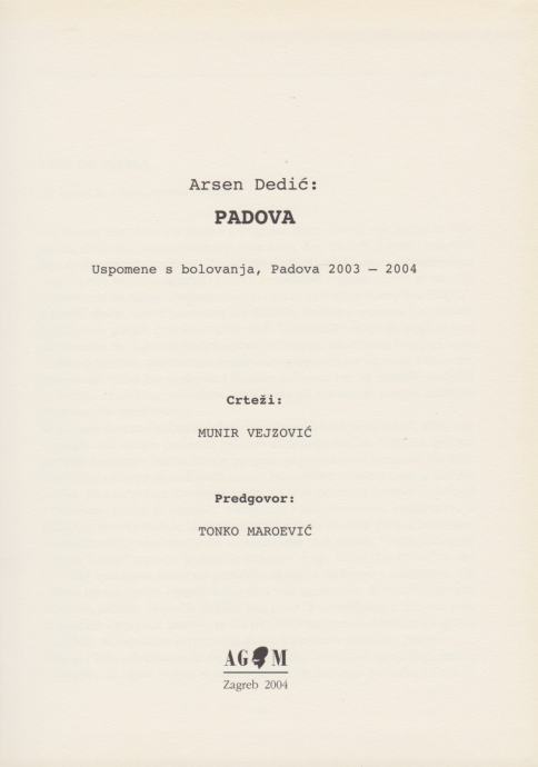Arsen Dedić: Padova, Uspomene s bolovanja, Padova 2003 - 2004, AGM, Zagreb 2004.