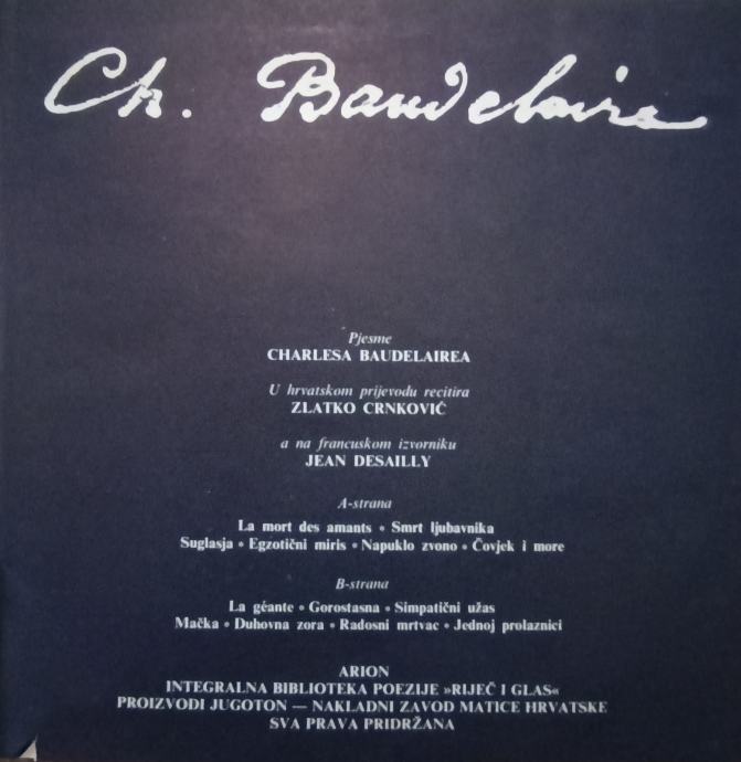 Pjesme Charlesa Baudelairea u hrvatskom prijevodu recitira: Zlatko Crnković.
