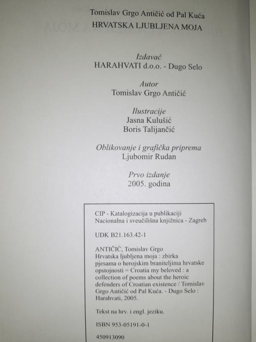 Zbirka pjesama o herojskim braniteljima hrvatske opstojnosti Hrvatska ljubljena moja ,autor Tomislav Grgo Antičić