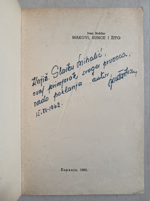Ivan Boždar: Makovi, sunce i žito (potpis+posveta)