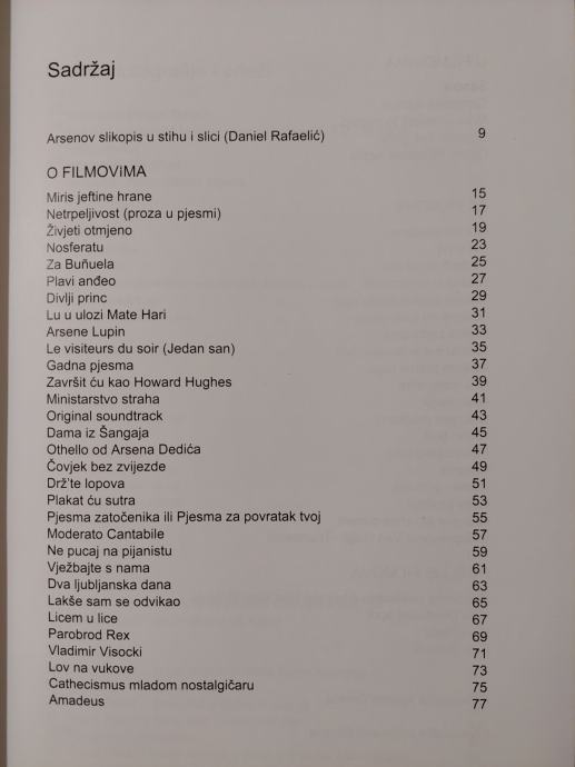 Knjiga "Kino sloboda", pod uredništvom Daniela Rafaelića, predstavlja Dedićevu intimnu filmsku povijest, odnosno songove i poeziju inspiriranu filmovima u izdanju HDA. U knjizi možete vidjeti filmske plakate kao i raritetne Arsenove crteže.