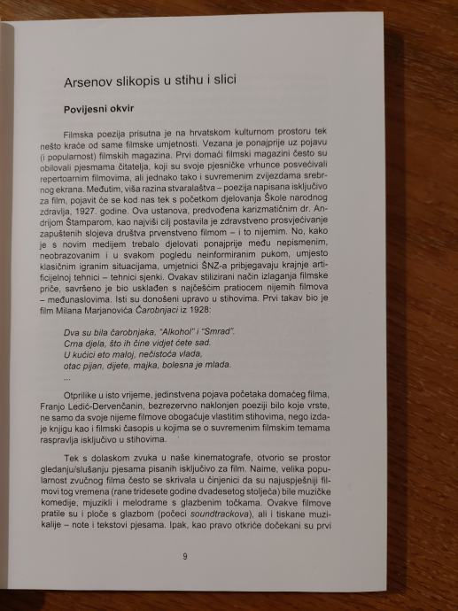 Filmska poezija prisutna je na hrvatskom kulturnom prostoru tek nešto kraće od same filmske umjetnosti. Vezana je ponajprije uz pojavu ( i popularnost) filmskih magazina. Sve do pojave Arsena Dedića, domaća kulturna javnost nije bila svjesna da poezija, govorena ili pjevana, može biti vrhunska, a opet svakodnevna.