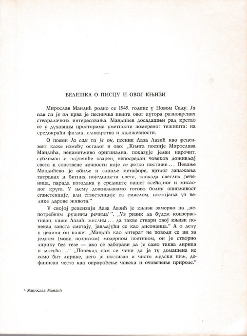 Miroslav Mandić: Ja sam ti je on, Matica srpska, Novi Sad 1984.