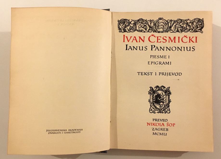 Nikola Šop - Ivan Česmički Ianus Pannonius Pjesme i Epigrami