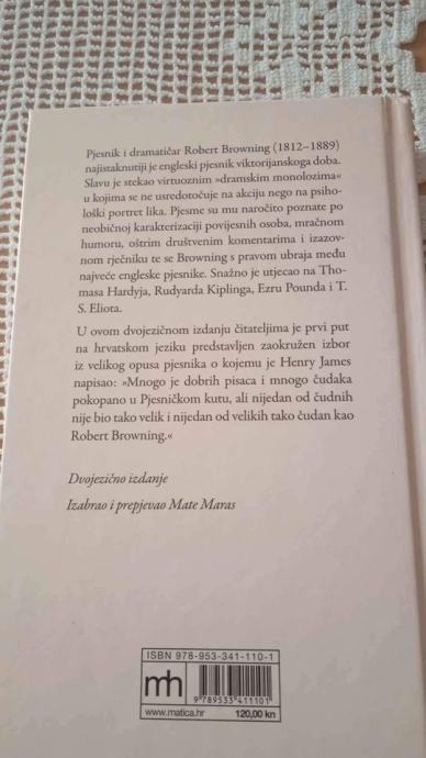 Prodajem dvojezično izdanje;engleski/hrvatski;Odabrane pjesme,BROWNING.Tvrdi uvez.