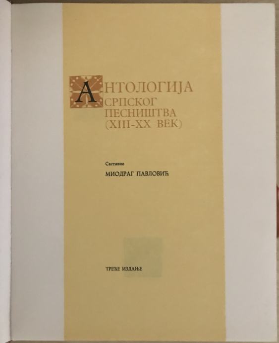 Pavlović,Miodrag: Antologija srpskog pesništva ( XIII - XX vek ).