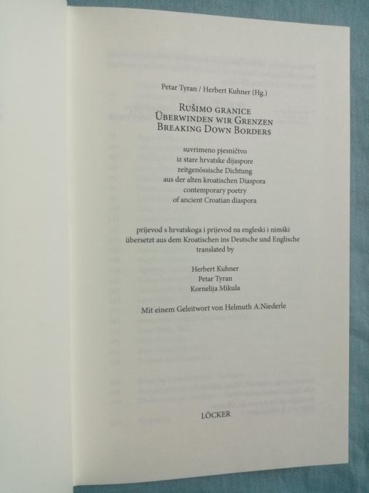 Petar Tyran i Herbert Kuhner (Hg.) – Rušimo granice : suvremeno pjesništvo iz stare hrvatske dijaspore