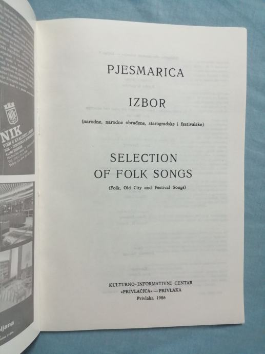 Pjesmarica : izbor (narodne, narodne obrađene, starogradske
