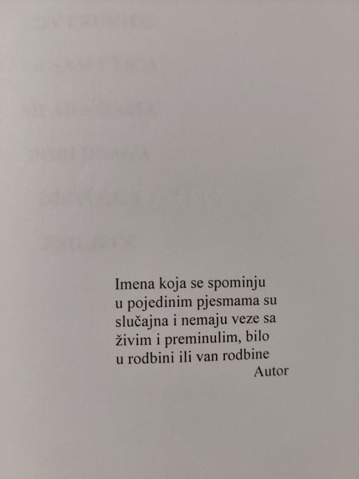 Kratka posveta (1 riječ i potpis) kemijskom olovkom na stranici koja sadrži naslov , izdavača , godinu , autora ...