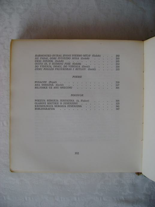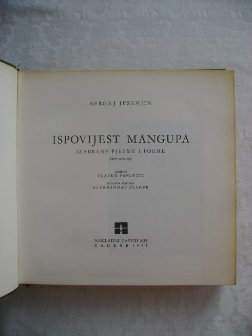 Sergej Jesenjin - Ispovijest mangupa; izabrane pjesme i poeme - izdavač Nakladni zavod Matice hrvatske, Zagreb 1975. godine, 19 x 19 cm, tvrdi uvez, 352 stranice, sadrži singl ploču sa recitacijama Jesenjina i Aksionova.