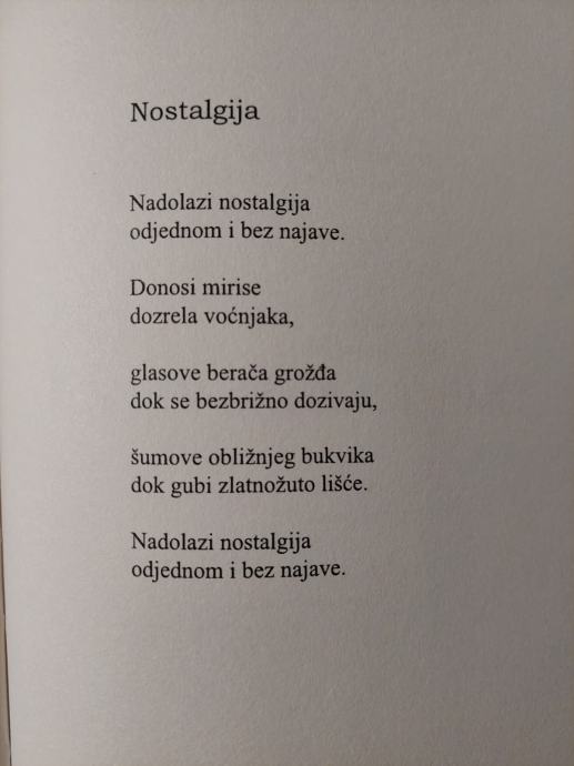 Doprinos je pjesnikinje povrat ljepoti genuinog iskaza osjećajnosti, iskustvenosti, vremenitosti i iskrenosti, bez tlapnji modernističkog neuspjelog kseno-imitatorstva bez pokrića i recentnog prenemaganja. Pjesnikinja izgrađenog stiha i njegovanog (svog) stila dočarava nam suptilni svijet, život i bitak, jedinstven u svojoj simplicifiranosti, a ujedno produbljenosti…