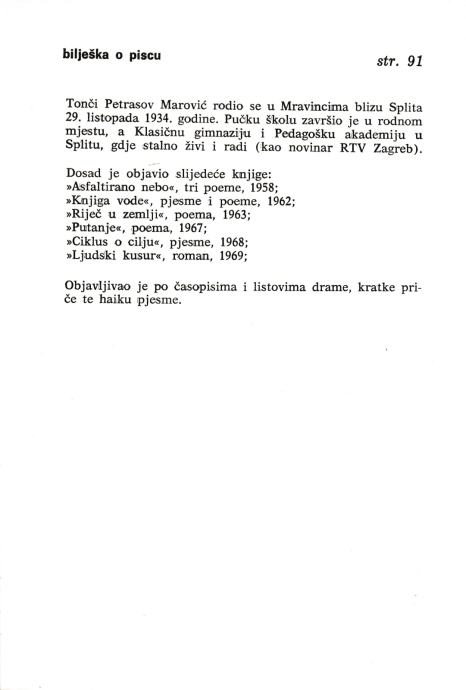 Tonči Petrasov Marović: Premještanja, SC, Zagreb 1972.