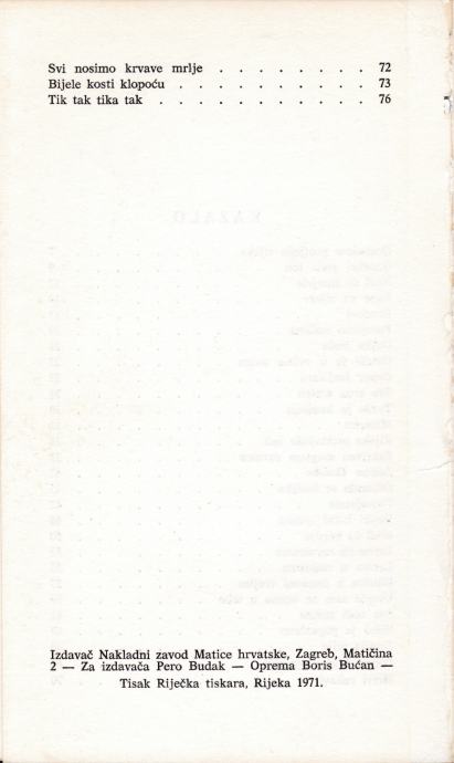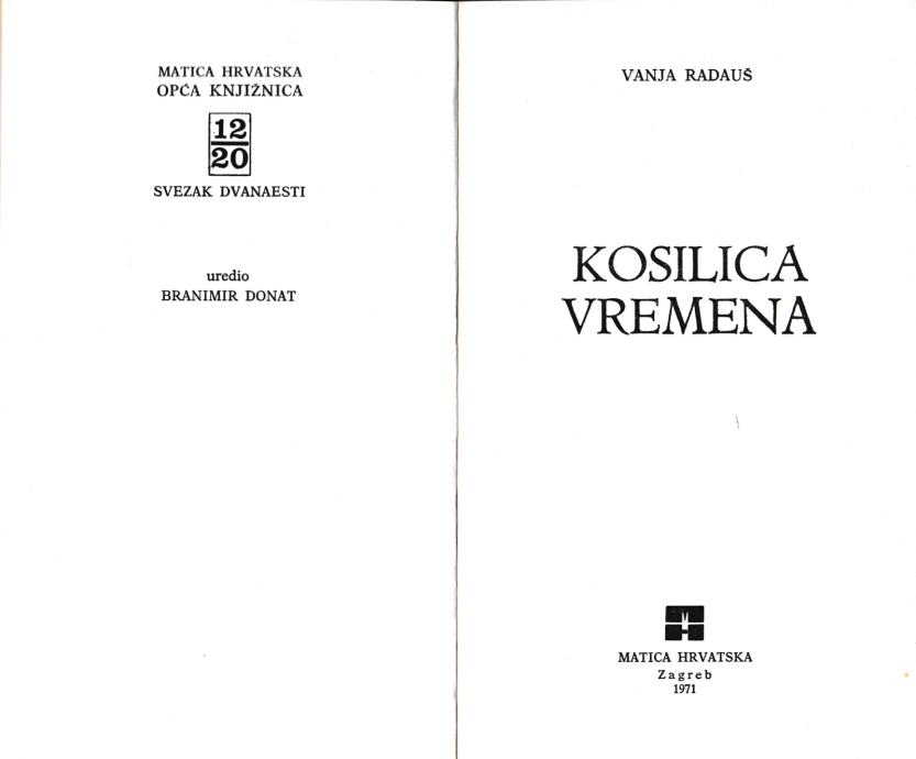 Vanja Radauš: Kosilica vremena, Matica hrvatska, Zagreb 1971.