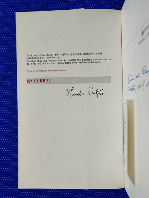 Knjiga s potpisom autora. Ima također i posvetu.