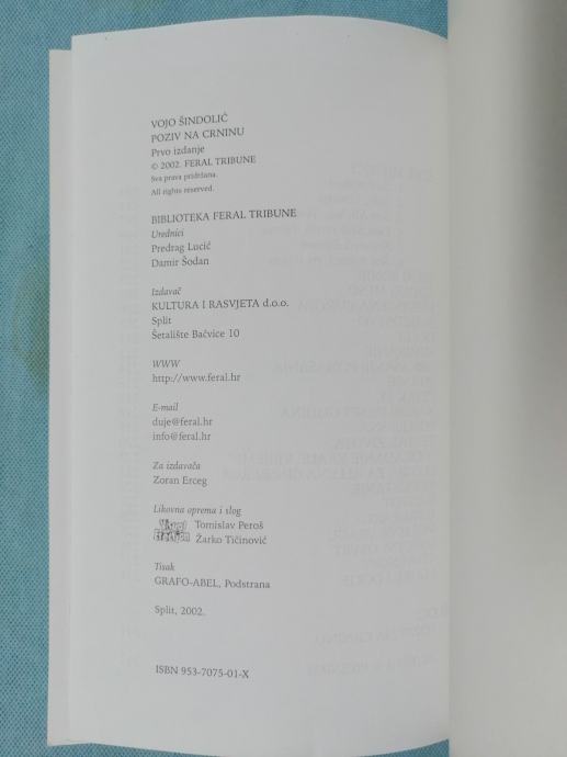 Vojo Šindolić – Poziv na crninu : Izabrane pjesme (1974.-1999.) (B62)