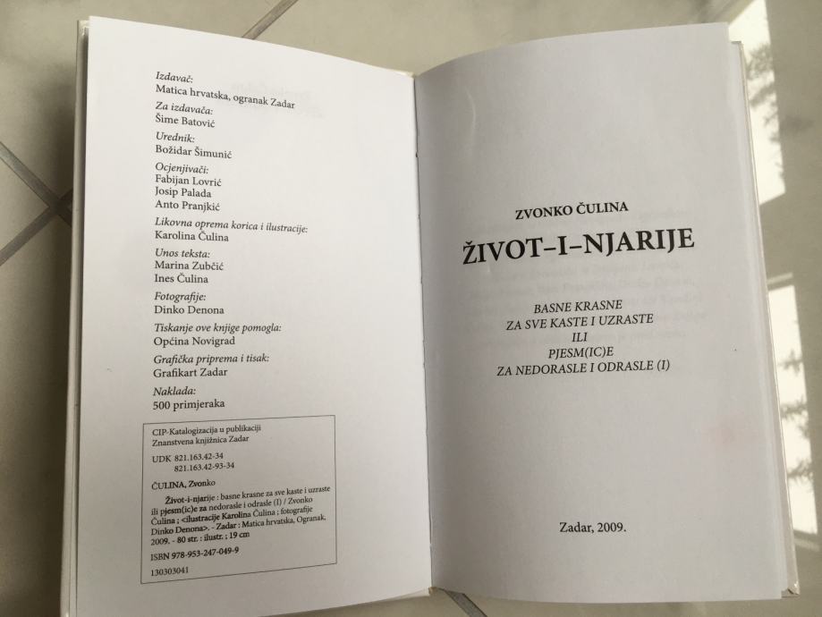 Nakladnik MATICA HRVATSKA Zadar 2009
