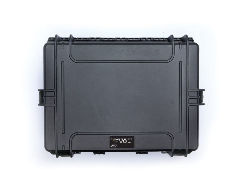Vrlo kvalitetan i čvrst kofer sa zatvaranjem na 4 točke, otporan na prašinu i vlagu. Kofer se može zaključati, dok se unutarnja pjena reže prema vlastitoj želji. Moguće je smjestiti EVO 3 A1 i 6 spremnika te bateriju, kao i niz dodataka.