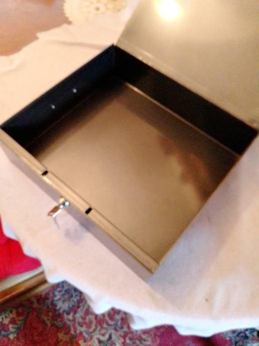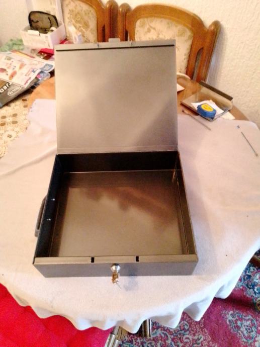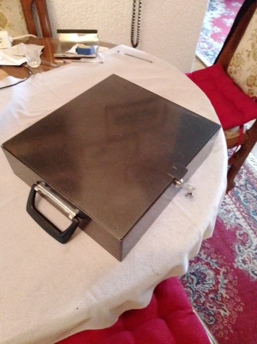 35*32*9cm metalni kofer za prenos oružja streljiva novca i vrijednih stvari sa Dva originalna (numerirana) kljuća .Kofer je bez oštećenja u originalnom stanju,fino i lagano zakljućava.Šaljem poštom uplatom na moj tekući račun+ troškovi poštarine.
