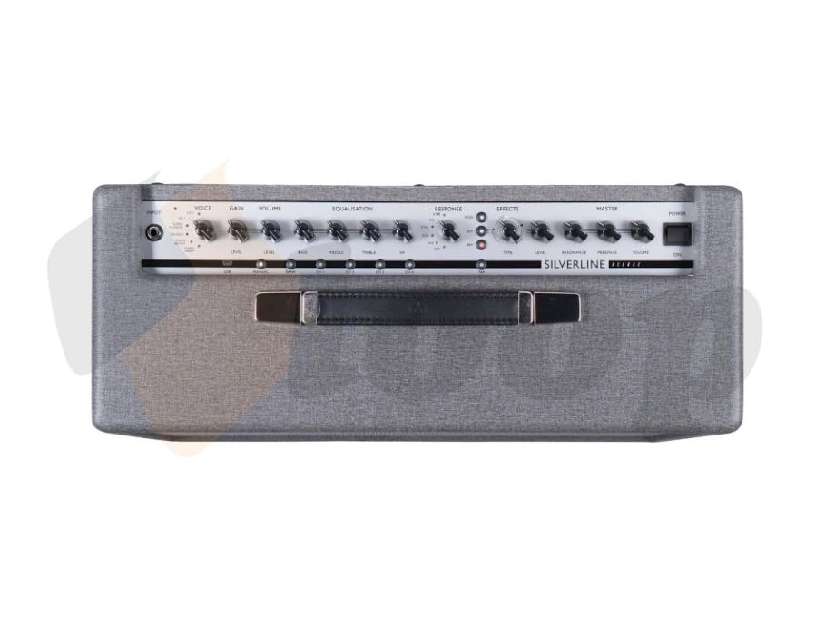 Blackstar Silverline Deluxe je moderni gitarski combo snage 100W. Uz atraktivan i stiliziran izgled nudi nam mnoštvo značajki koje će vas nadahnuti na svirku bez obzira na žanr: patentirana tehnologija s emulacijama klasičnih cijevnih tehnologija, 6 vrsta pretpojačanja, USB priključak za direktno snimanje i re-amping, patentirani ISF potenciometar kojime možete miješati ‘američki’ i ‘britanski’ sound, mogućnost pohranjivanja zvukova i još mnogo toga. Ima ugrađen zvučnik Celestion V-type 12″, pa je praktično za ponijeti bilo kuda sa sobom na svirku.