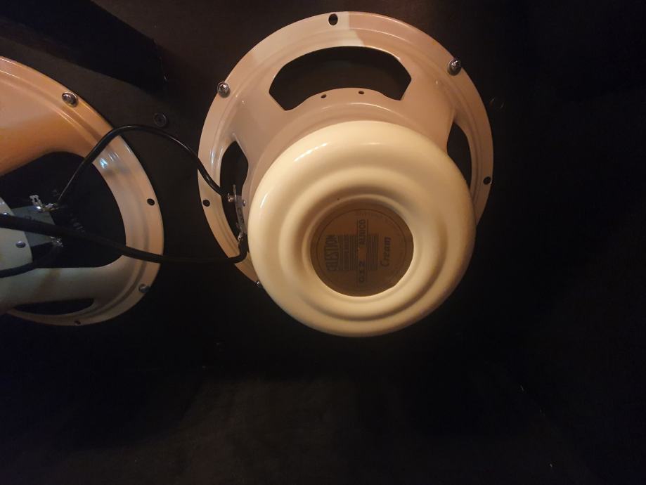 Prodajem Bogner 2x12 Oversized box za gitaru u odličnom stanju. Original v30 su izvađene iz boxa i stavljeni Celestion Alnico Cream 8ohm zvučnici koji su spojeni serijski da daju na izlazu 16 ohma. Radi se o zvučnicima koji svaki košta 290€, znači 600€ samo zvučnici.
