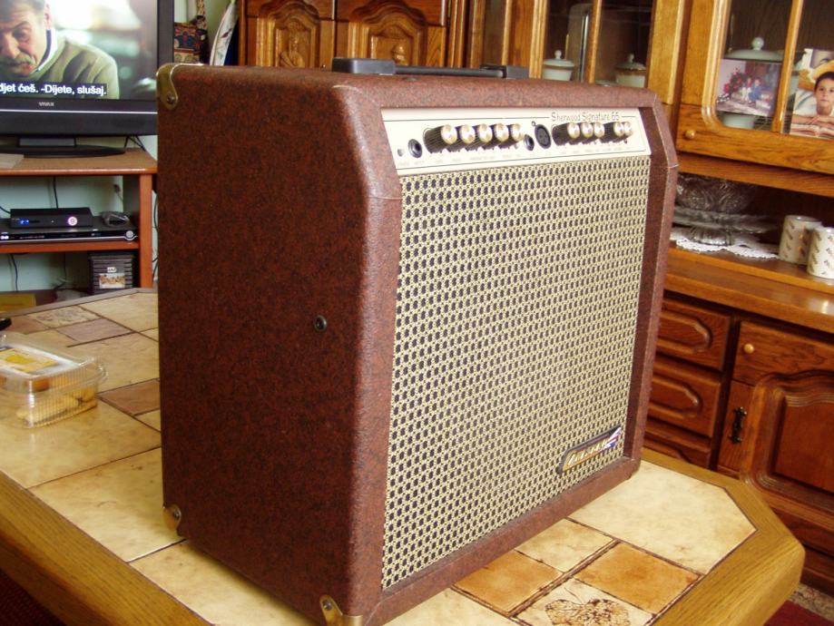 Prodajem pojačalo za el.akustičnu gitaru i mikrofon,engleske proizvodnje,snage 65/150 W,iznimno kvalitetno po zvuku i izradi sa Celection 12" zvučnikom i visokotoncem,dvokanalno (dvije gitare i mic),sačuvano,kao novo,maženo i paženo.Kučište teško masivno izrađeno sa izvrsnom tranzistor tehnologijom što omogučava paljenje i gašenje na kratkim intervalima sviranja i ne šteti pojačalu kao u lampaša.Ima opcije spajanja ili priključaka efekata ili razglasa i pregršt zvukova (gain po kanalu,reverb, parametric filter)Cijena 2100 kn. MOŽE ZAMJENA za gitarsko pojačalo.