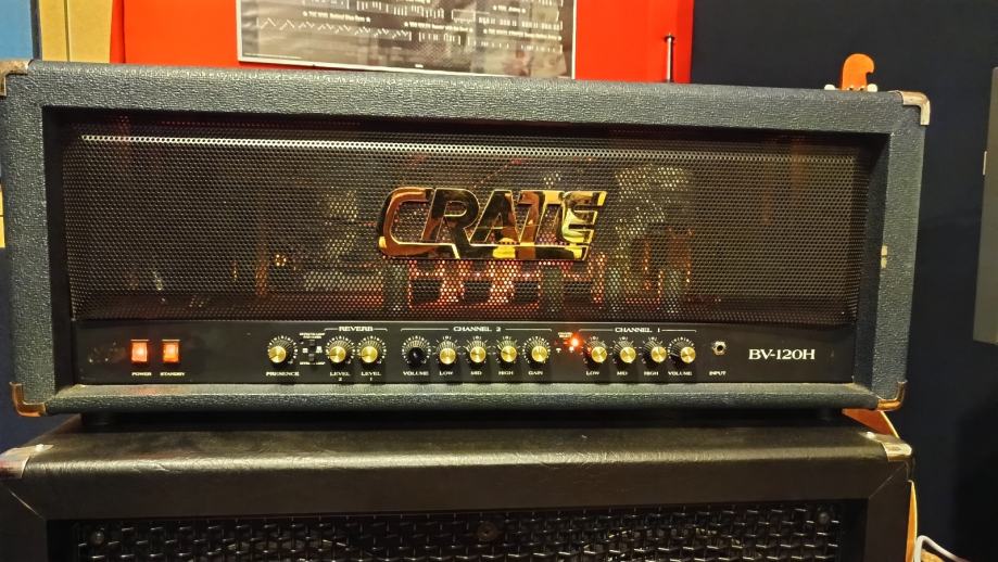 Crate BV-120H, lampaško gitarsko pojačalo. 2 kanala, clean&crunch. 120W RMS. Footswitch. Send-return in/out za spajanje rack efekata tipa reverb, delay..