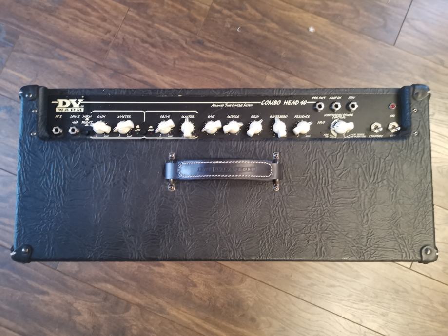 DV MARK DV40/212 all-tube COMBO pojačalo. Snaga DV MARK DV40/112 pojačala: 40W. DV MARK DV40/112 combo opremljen je sa 1x12" zvučnikom i EL34 lampama. DV MARK combo ima 2 kanala. Tonalne mogućnosti DV MARK DV40/112 pojačala su neograničene zahvaljujući DV MARK patentu Continuous Power Control (CPC) koji dopušta postupnu promjenu snage od full-40W (Class A/B), pa sve do 1W (Class A) u pentode modu ili 15W (Class A/B) do 0.5W (Class A) u triode modu. DV Mark je serija gitarskih pojačala koja proizvodi firma MARBASS. DV MARK pojačala spadaju u HI-END profesionalna pojačala vrhunskih performansi.