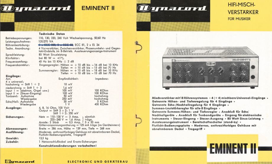 DYNACORD EMINENT ll vintage pojačalo sa elektronkami ECC81 2x EL34