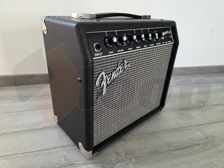 odlično očuvano pojačalo za gitaru idealno za vježbu i manje svirke. Ima 20 watta snage, jednostavne kontrole, odlične efekte kojima možete dobiti zvuk za sve stilove glazbe, od rocka, bluesa, metala, do country i jazza. Zvučnik 8” Fender Special Design, Reverb, delay/echo, chorus, tremolo, Vibratone i druge efekte i nekoliko vrsti distorzija.