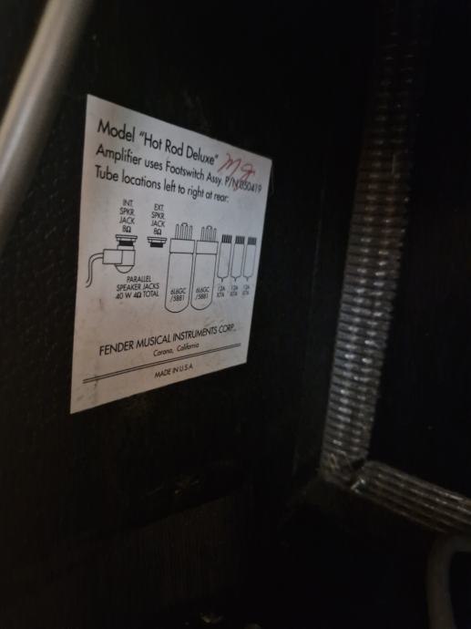 Prodajem Fender Hot rod Deluxe lampaško pojačalo iz prve serije proizvedeno u Usa 1996.g., očuvano je i potpuno ispravno s novim JJ izlaznim lampama. Pojačalo je nedavno kompletno servisirano te znatno nadograđeno u odnosu na tvorničko, ugrađen je novi-kvalitetniji izlazni trafo namotan od strane majstora Kolareka te mu je ujedno podešen i BIAS. Osim toga ugrađen je najbolji Supreme mod kit od Fromel electronics-a tako da pojačalo sada zvuči znatno bolje i na cleanu i driveu. Uz pojačalo ide i novi - doslovno nekorišteni Fender 2-Button Footswitch G/M plaćen 71 euro te original Fender zaštitna navlaka.