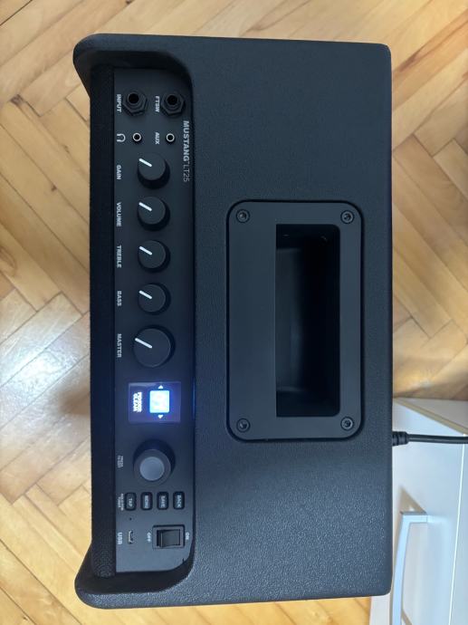 Ovo fender Mustang LT25 gitarsko pojačalo snage 25 W, idealno je za vježbanje i kućnu upotrebu. Opremljeno je Fender Designed 8” zvučnikom, s 50 ugrađenih preseta i 25 efekata koji pokrivaju širok raspon stilova. Ima MP3/linijski ulaz za sviranje uz glazbu, izlaz za slušalice za tihu vježbu te USB priključak za snimanje i povezivanje s računalom. Podržava nožni prekidač (nije uključen). Kompaktno i lagano, težine samo 5,7 kg, lako prenosivo. Napajanje na 240 V. Savršeno je za početnike j za naprednije gitariste i nudi velik raspon tona.