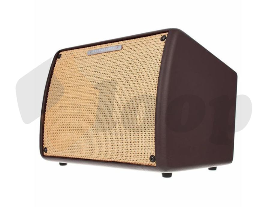 Pojačalo za akustične gitare snage 30w, opremljeno s 1x 8″ coaxial zvučnikom i tweeterom, retro izgleda, dva odvojena kanala, chorus i reverb efekti, dva ulaza (instrumentalni i mikrofonski XLR).