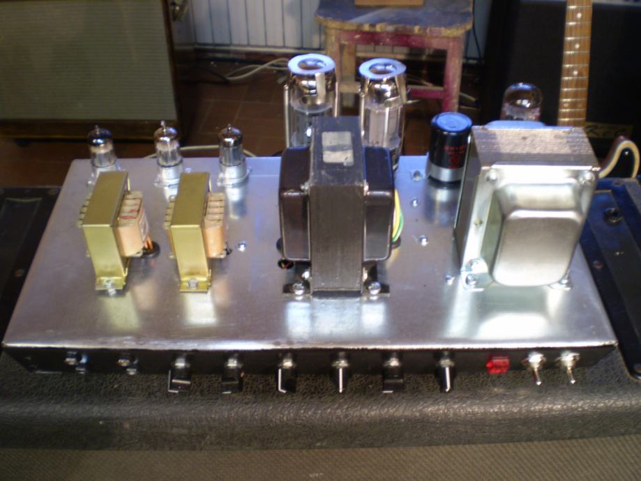 Pojačalo JTM45 clone lampe 3xecc83,2x6L6 GC,1xGZ34,point to point.Mogućnost ugradnje FX lopp sa lampom,,PPIMV (master vol.) Preklopnik za pola snage.više info na mail vdkec@yahoo.de