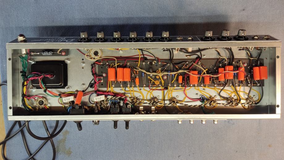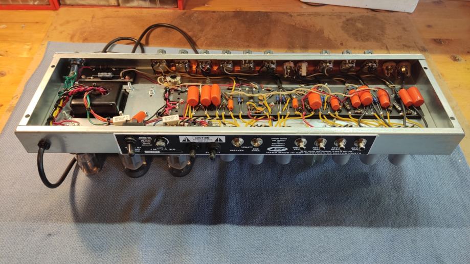 Unutrašnjost pojačala je rađena point to point tehnikom.