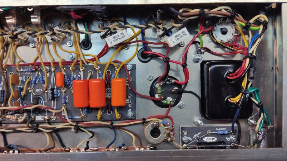 Pojačalo u mojoj izvedbi ima transformatore veće snage i urađeno je sa cijevima 6P6S (6V6GC Russian Military Tubes), rađeno je point to point tehnikom.