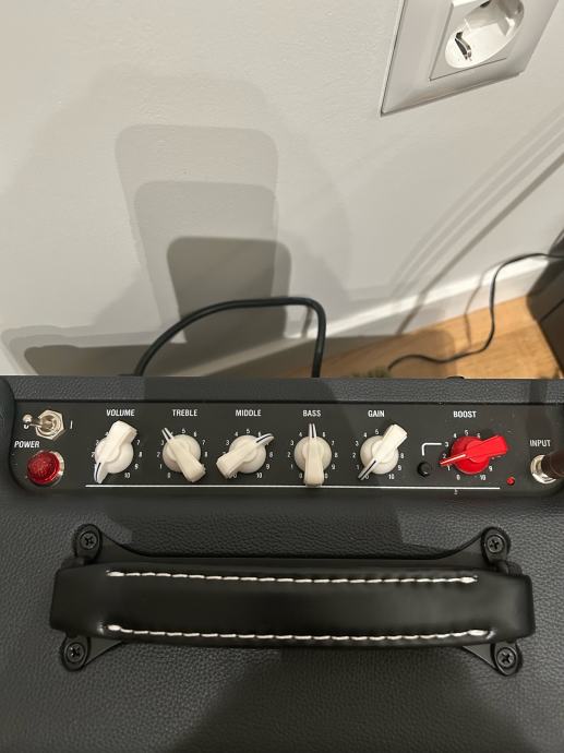 Odlično malo lampaško gitarsko pojačalo. 6w snage. Kupljeno prije mjesec dana. U kao novom stanju osim malog kozmetičkog oštećenja s prednje strane koje se vidi na slikama. Uz pojačalo dajem i mali laney footswitch koje se može koristit za paljenje i gašenje ugrađenog boost-a u pojačalu.