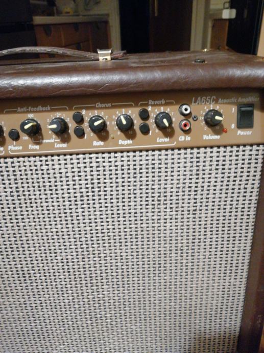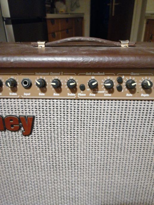 Solidno stanje, 65w, 2 zvučnika od 8 inča + visokotonac. 2 kanala, korus i reverb.