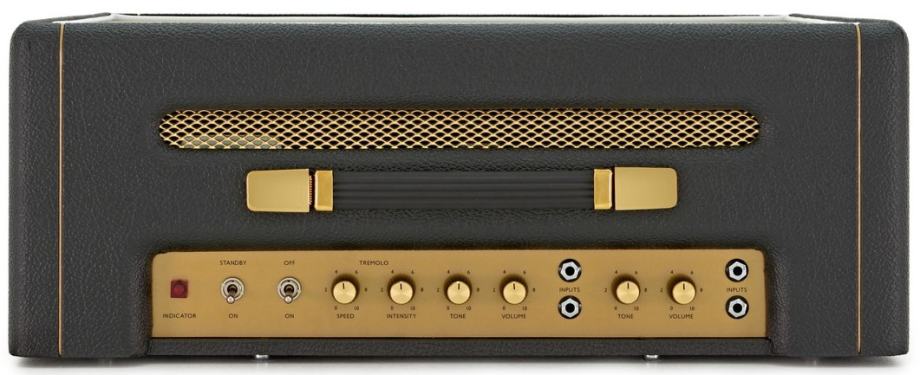 Controls: CHANNEL 2 (VOLUME, TONE), CHANNEL 1 (VOLUME, TONE, TREMOLO INTENSITY, TREMOLO SPEED)