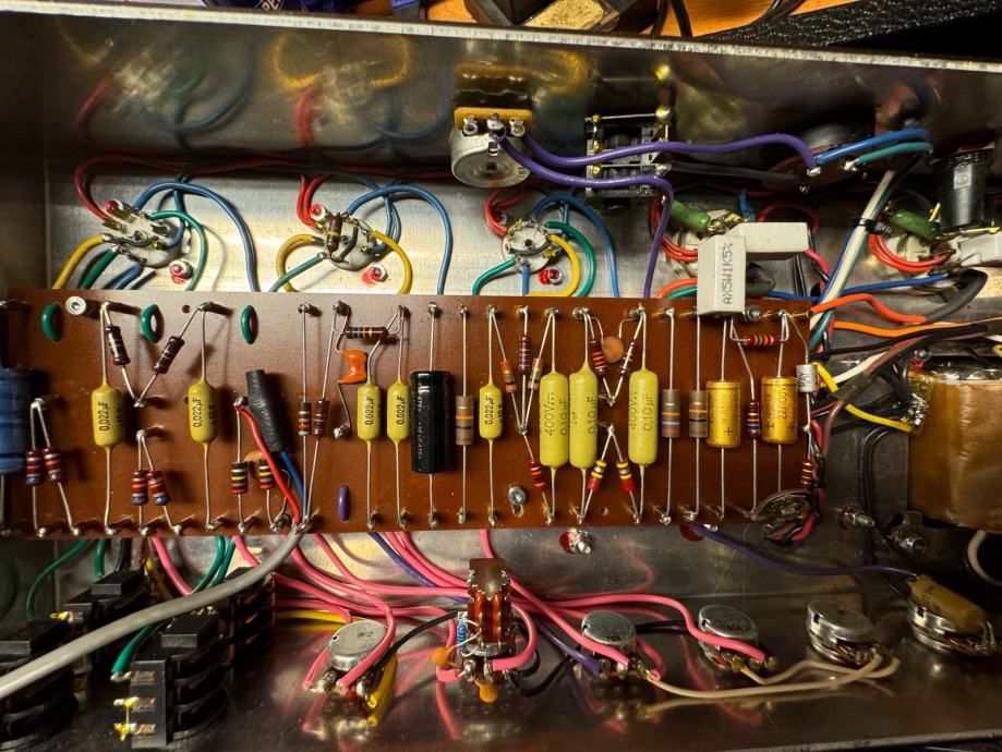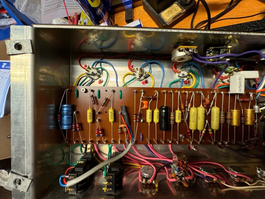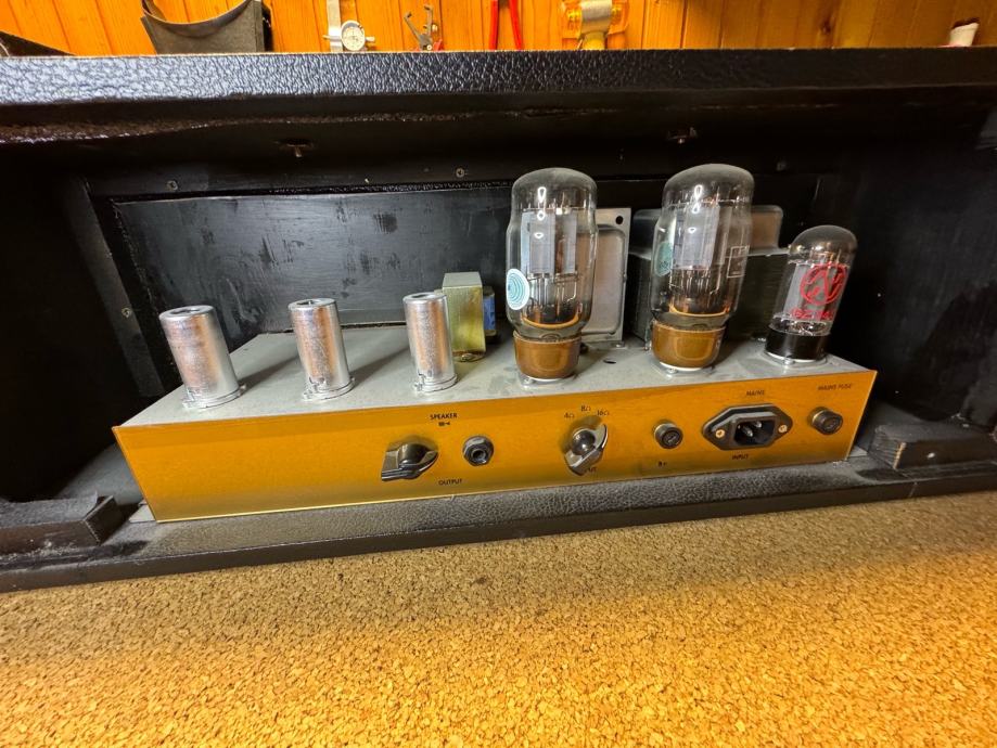 Samogradnja, originalne vintage komponente i Merren transformatori. negative feedback potenciometar na straznjem djelu kucista za regulaciju negativne povratne sprege.