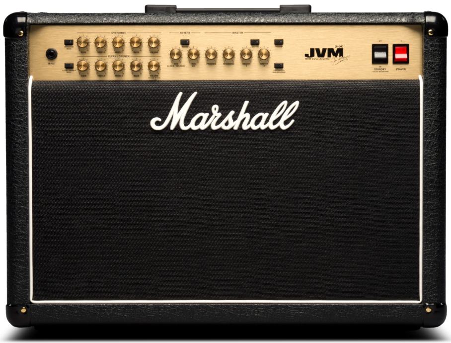 Controls: Channel and mode select (button), gain (per channel), treble (per channel), middle (per channel), bass (per channel), volume (per channel), reverb (per channel), presence, resonance, master volume select, master volume (switchable for each channel)