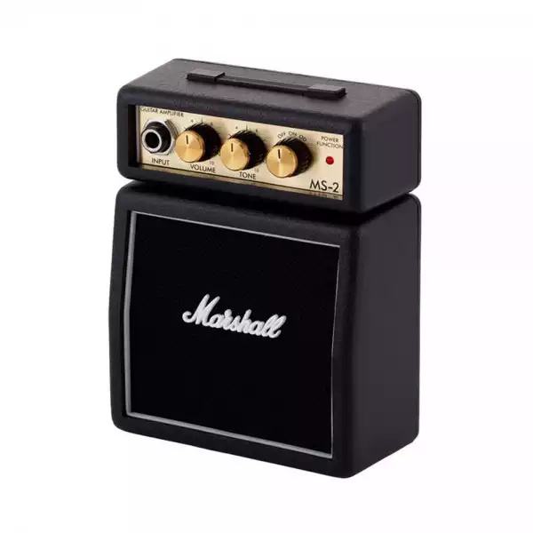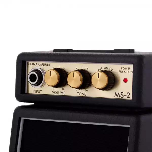 The MS2 is the ultimate between Mini Amps. It is powered by battery or mains and in just 14 x 11 x 6 cm tiny case produces real, full Marshall sound. This small "sound miracle" can be switched on Clean and Overdrive Mode and has a tone control with extreme bandwidth.