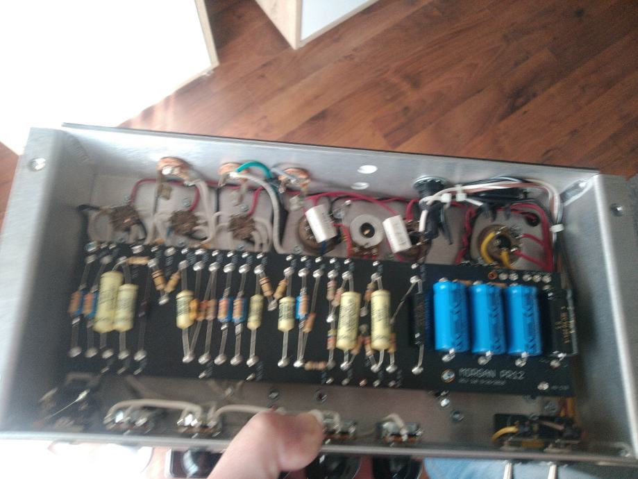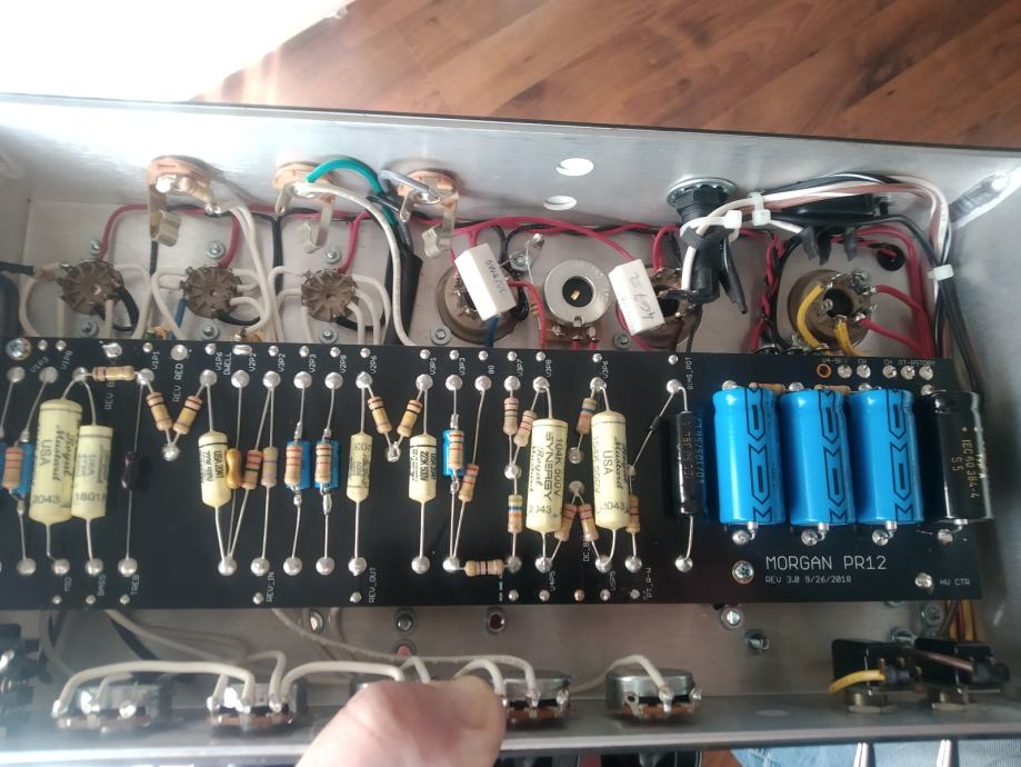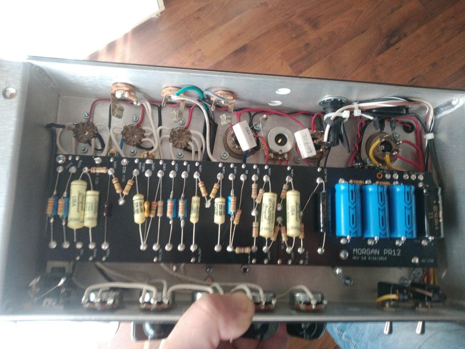 Joe Morgan je napravio savršeni princeton PR12. Rađen point to point sa vrhunskim komponentama. Mercury trafoi/4kom/mallory ,mustard kondenzatori EH 6v6x2,12ax7 x3 zvučnik celestio G12 M Greenback.Sound studijske kvalitete. Naravno tu je i casse Rađen po mjeri.Sve profi!!!!Pojačalo je dovoljno jako da svirate koncerte/1000 ljudi/svatove...