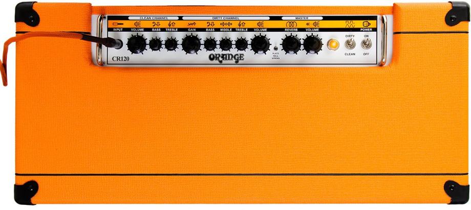 Orange Amplifiers expands its line of solid state Crush amps with the new CR120C 120-watt 2 x 12" Combo. This Crush amp delivers more authentic Orange tone than ever, with both amp channels designed after the Rockerverb. The clean channel sports two gain stages that start to break up when it's cranked, and the dirty channel uses four gain stages to deliver classic Orange overdrive tones.