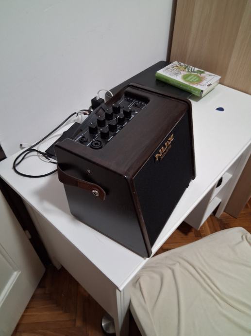 Korišteno za sviranje na ulici. Radi besprijekorno. Ima ulaz za mic i za gitaru. Za sviranje na ulici je dovoljno jako, preporučam.