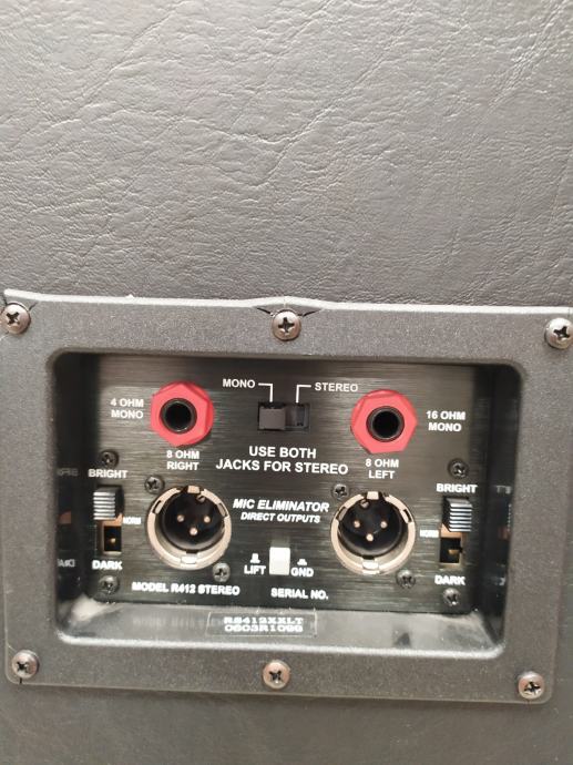 Četiri komada Celestion Vintage30 zvučnika, ukupno 240 W na 4 ili 16 ohma mono ili 2x8 ohma stereo.