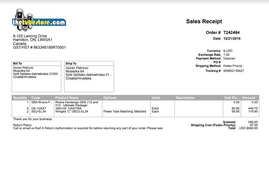 5 12ax7 lampi u pretpojacalu, dvije el34 izlazne lampe. Pojačalo je kupljeno novo, u izvrsnom stanju sta je vidljivo na slikama (jako malo svirano).