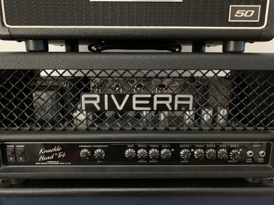 Prodajem Riveru Knucklehead KTre pojačalo, lampaška 120W glava, u odličnom stanju, s robustnim flight case koferom i eksternim MIDI interfaceom koji se može upariti s različitim midi kontrolerima pa je moguće upravljati kanalima pojačala i različitim pedalama u analognom spektru. Pojačalo je vrlo popularno high gain pojačalo, među glavnima glazbenicima koji aktivno koriste KTre su Adam Jones iz Toola, Chino Moreno i Steph Carpentar iz Deftones, Meegs Rascon iz Coal Chamber, Jon Donais iz Anthrax & Shadows Fall, Ziggy Marley i Al Anderson of the Wailers za clean Reggae tonove. Ima nevjerojatan clean kanal koji je izvrsna baza za sve pedale, do sada prvo i jedino pojačalo s kojim svaka pedale zvuči dobro. Što se tiče drive kanala, on je klasičan drive kanal ranih 90-ih i kasnih 80-ih, gdje je bas vrlo izražen i potrebno je rezati bas frekvencije, s Boss SD-1 se dobija potpuno drugačiji karakter pojačala koji radi izvrsno u miksu i daje moderni high gain zvuk gdje ipak zadržava svoj Rivera karakter. Na pojačalu su sve komponente predimenzioniranih specifikacija i više klase stoga je pojačalo vrlo pouzdano.