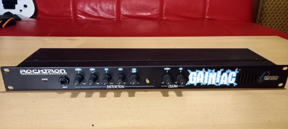 Rocktron Gainiac je lampaško gitarsko predpojačalo sa jednom 12ax7 lampom u sebi i ima žestoki gain ili ti distorziju,za drugačije drajvove mogu se stavljati i druge preamp lampe ali u ovoj kombinaciji je namjenjeno za rock i metal,ima dva kanala clean i brutal i to je to.Stavljena nova JJ 12ax7 lampa.
