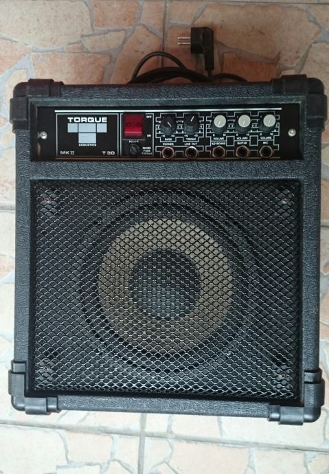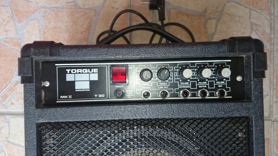 Torque t30 acoustics ima 3 ulaza - klavijature, gitaru i mikrofon svaki sa svojim vlastitim kontrolom glasnoće. Ima kontrolu basa i trebla te line out i phones izlaze.Vrlo univerzalno i rijetko pojačalo 30 wata sa 8" zvučnikom made in UK.Radi dobro električna gitara mada je više namjenjen za elektroakustičnu.